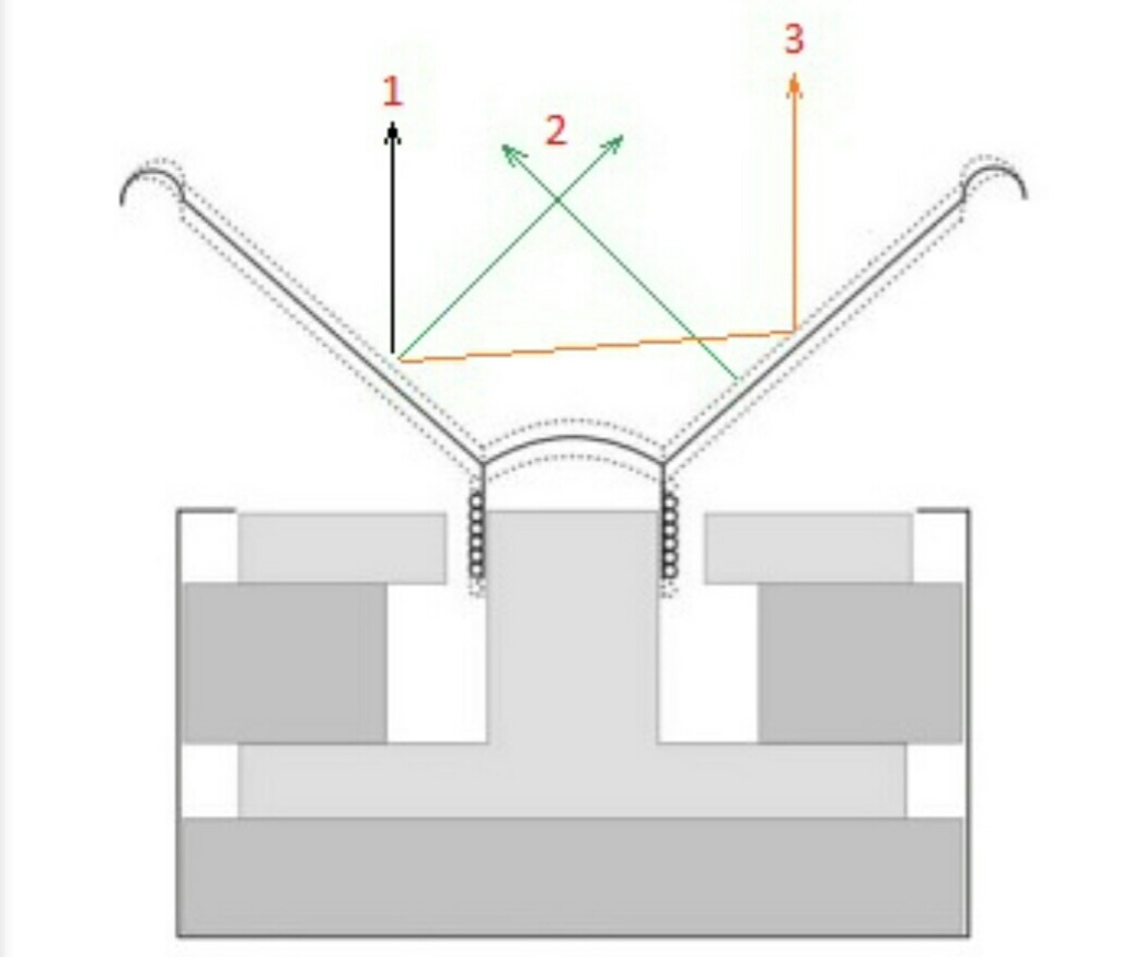 С другой стороны, такая конструкция имеет и отрицательную особенность — кроме звуковых волн, направленных к центральной оси, возникают волны, имеющие направление к оси динамика, а также отраженные от противоположной стороны конуса.