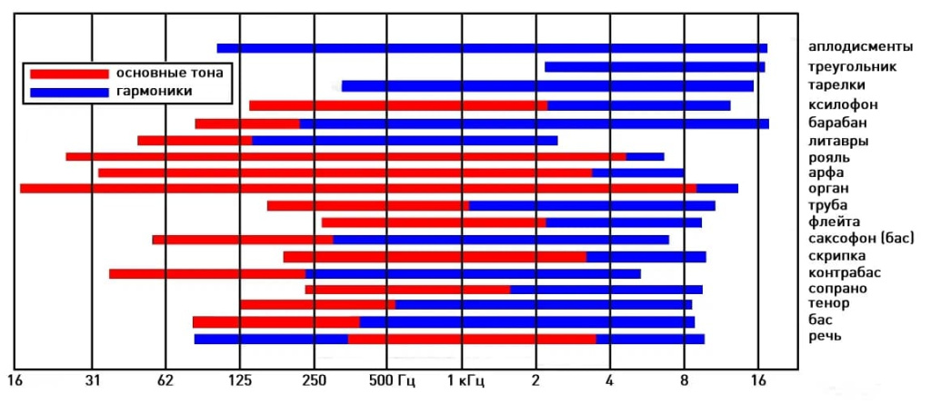 Звуковысотный диапазон традиционных музыкальных инструментов с обертонами (гармониками) простирается до 16 кГц. Природные и техногенные звуки могут иметь и более высокую частоту, но это «исключения из правил», аудиотехника прежде всего предназначена для передачи музыки. Среднестатистический молодой человек воспринимает звуки в пределах 20 кГц, с возрастом эта граница постепенно снижается – но не будем о грустном.